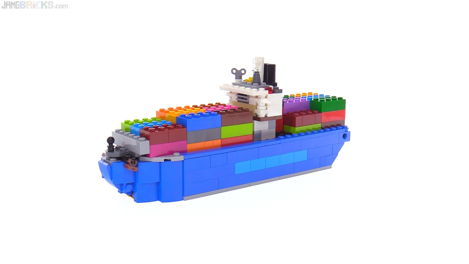 This features an intermodal cargo ship with containers and a dock with a crane and a few little related items.
