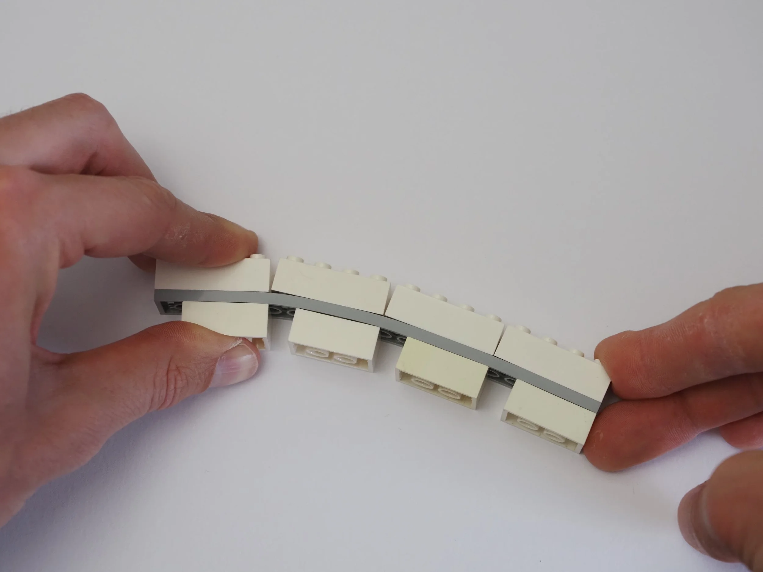 Because we also have to deal with tension now, we can no longer just rely on bricks pushing into each other for stability. Standard stud connections are much easier to pull apart (possible for any child, just friction) than to slide apart (you’ll sooner break the bricks, shape-locked). This is why we want to have all loads primarily supported by sliding stud connections. It just so happens that this is possible for all the forces arising from bending if we build our primary structure sideways.