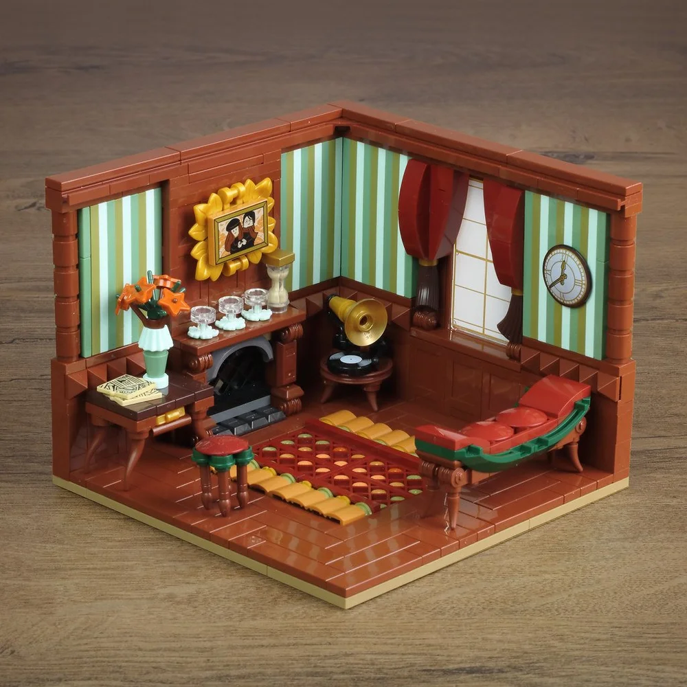 His wonderful Sitting Room, for example, pairs the boat stud with four plain paint brushes and some round plates with open stud and manages to evoke a completely different mood altogether.