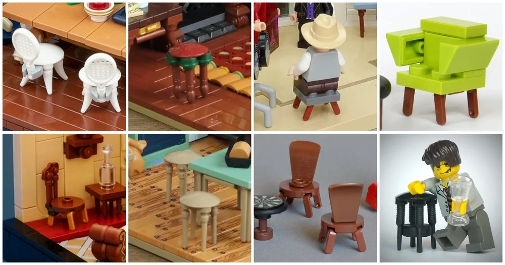 Most commonly found in the wild as a quadruped, the chair has a few basic traits: a flat top to sit on, optional back- and/or armrests, and (usually) up to four legs. That is a very short list of requirements, but one that will provide ample room to be creative with. After all, there is a myriad of LEGO pieces, and as such, there is a wild variety of options for representing any of those things.